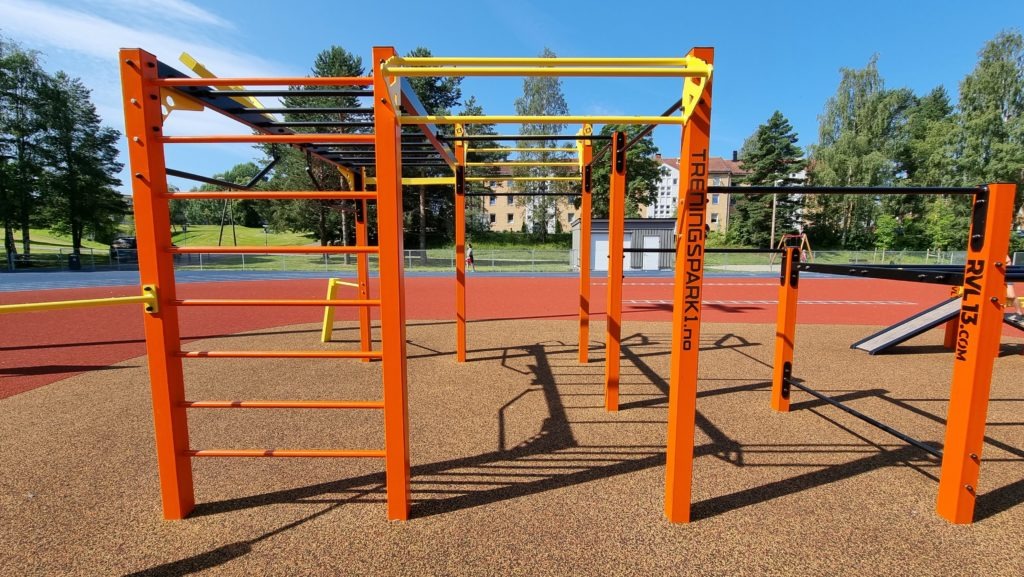 Parken på Høybråten er en del av konseptet Friplassen, designet og utviklet av Studio Oslo Landskapsarkitekter. Her har vi levert en Nippur M, dobbel sit-up benk og stalks.