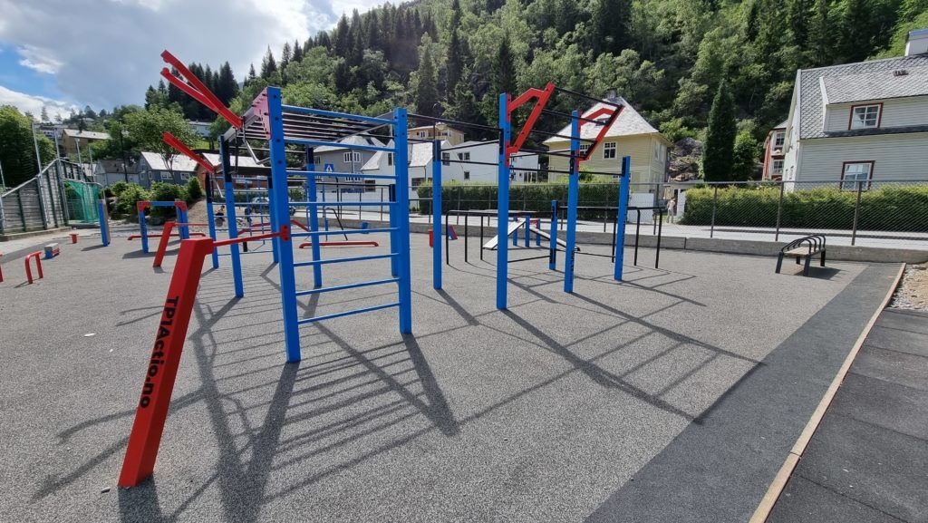 Her kombineres street workout og parkour.