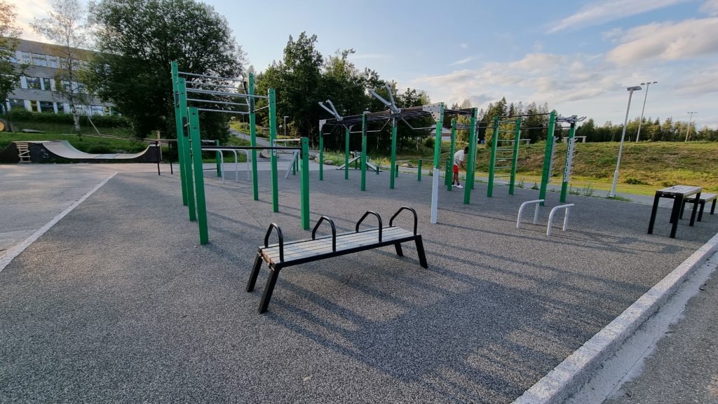 Risil Treningspark er en flott park som og er designet slik kunden ønsket å ha den. Både fargekombinasjon og sammensetning av apparater er spesielt for denne parken. Området er mye i bruk, både av lokalbefolkning og idrettslag.