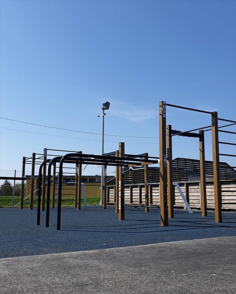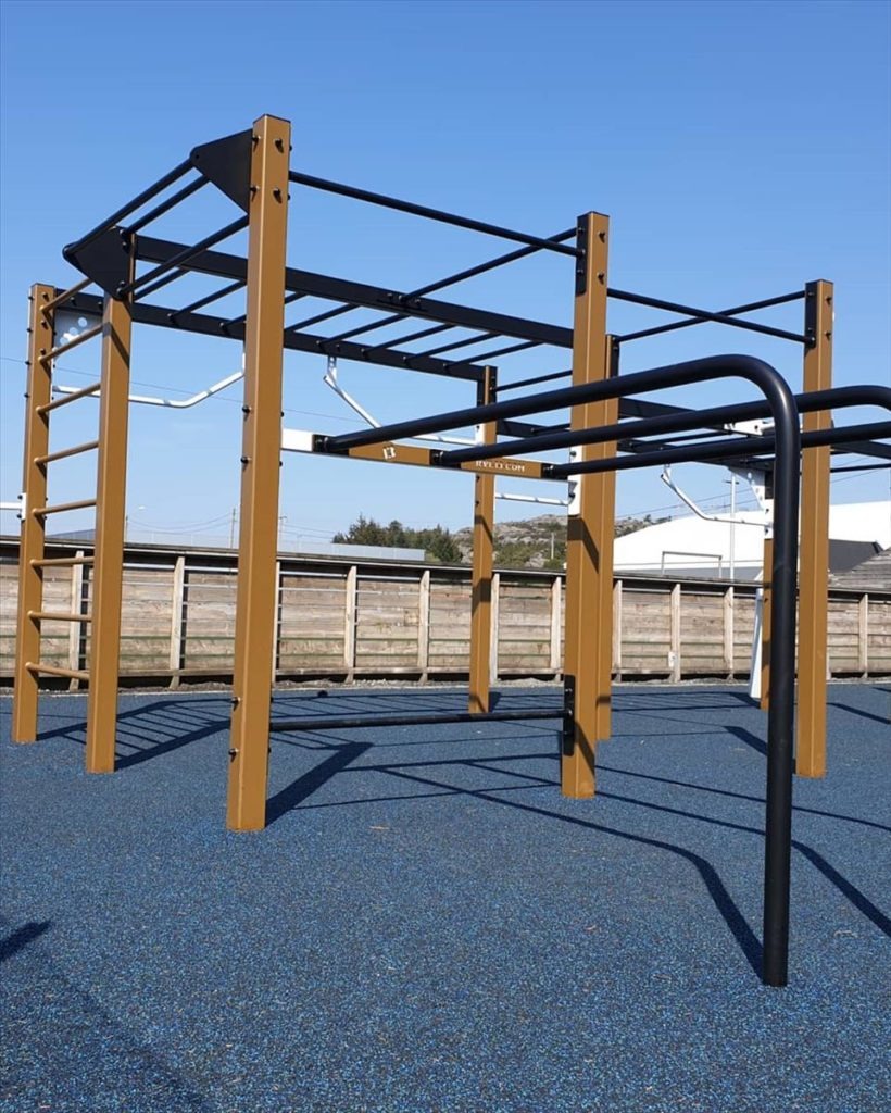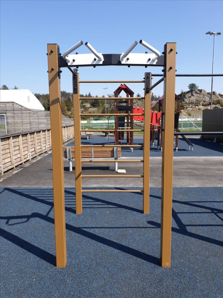 Skudenes UIL ønsket å etablere en kombinert multisport arena og lekeplass. Dette er et større anlegg som består av en kombinert basketbane, volleyball og tennisbane samt en lekeplass. Vi monterte opp våre treningsapparater sammen med en dugnadsgjeng fra klubben.
